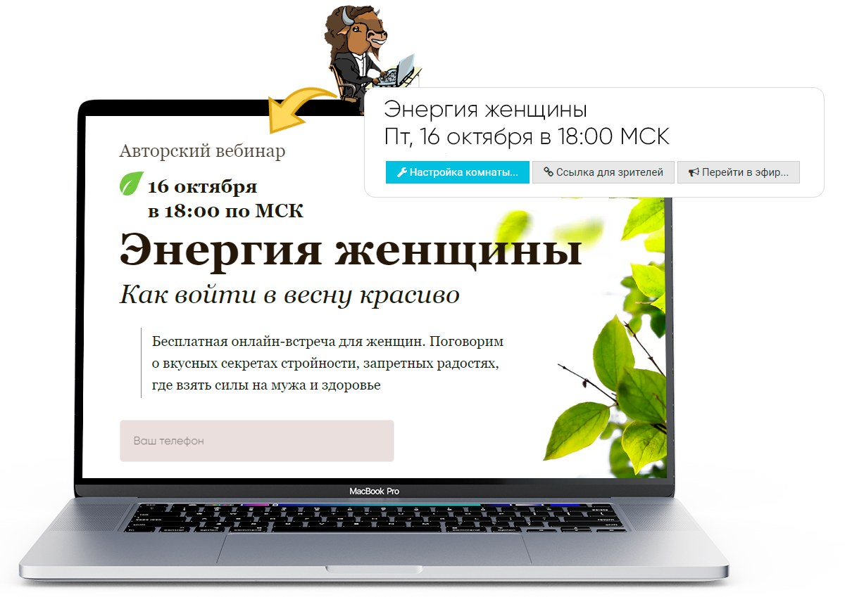 • Как работает: Дата будущего вебинара автоматически переносится с вебинарной комнаты в Bizon365 на страницу в Tilda.