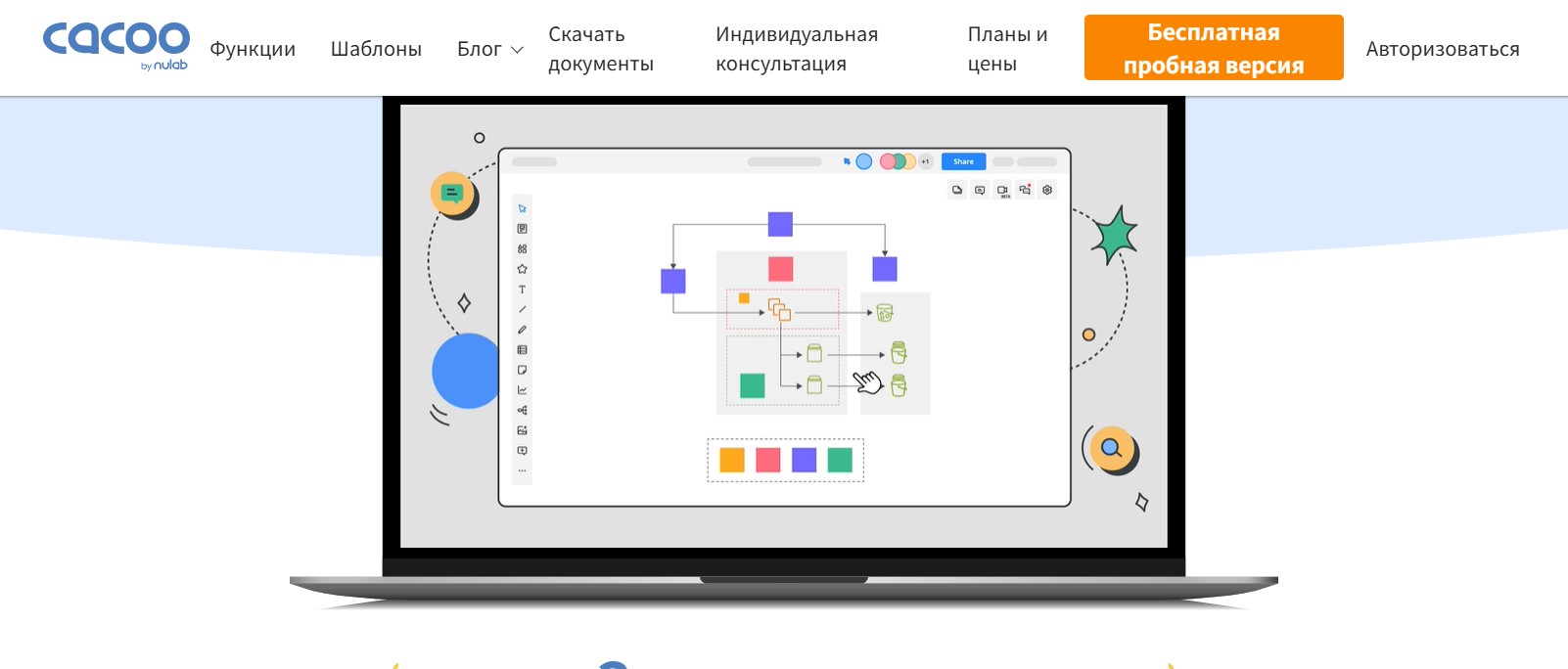 Студенты рисуют блок-схемы алгоритмов, экосистемы или бизнес-процессы. Поддерживает видеозвонки и комментарии.