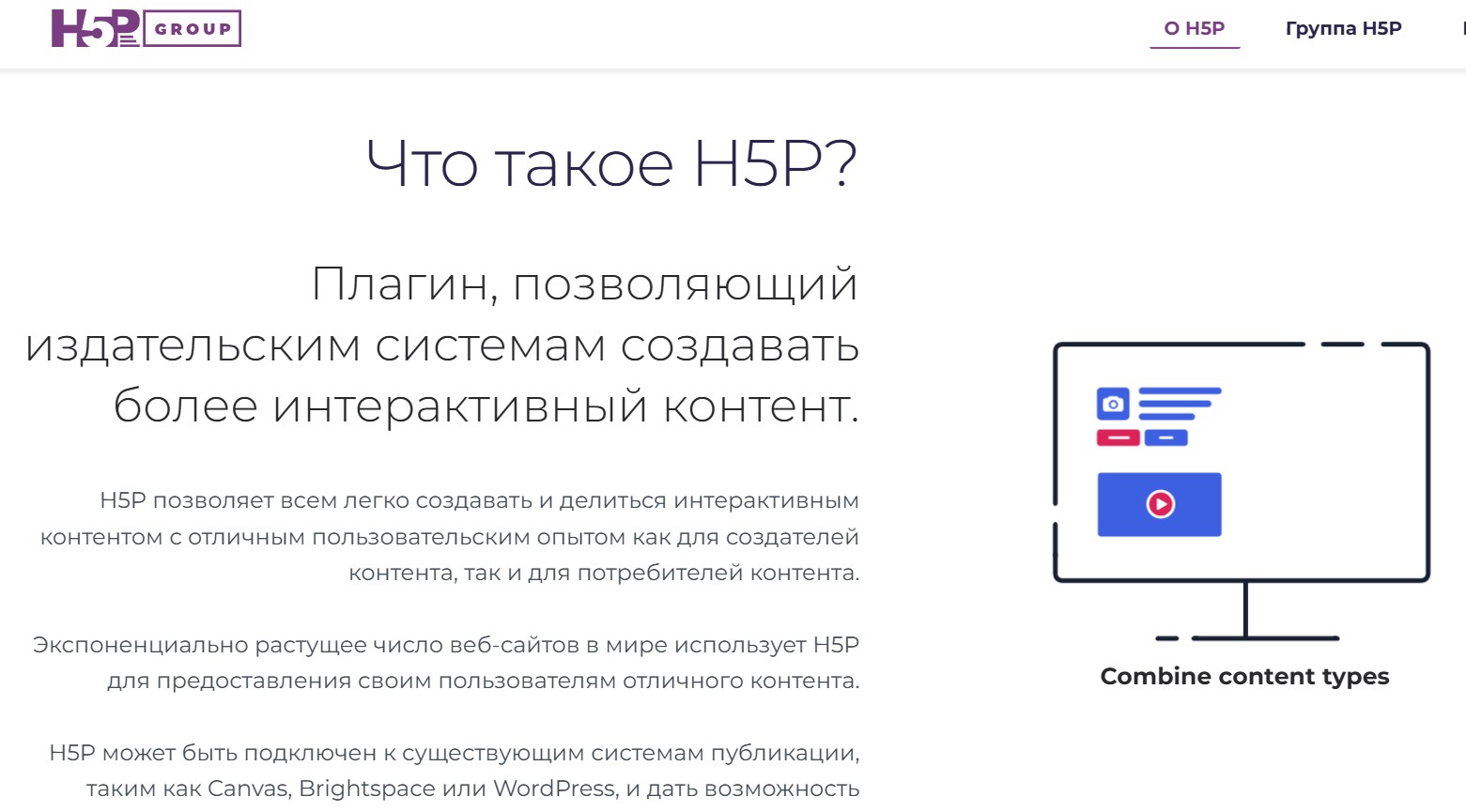 Популярная open-source технология для интерактивного контента. Это не единичный сервис, а целая библиотека готовых шаблонов интерактивных модулей, которую можно использовать на разных платформах (есть плагины для Moodle, WordPress, Drupal и т.д.).