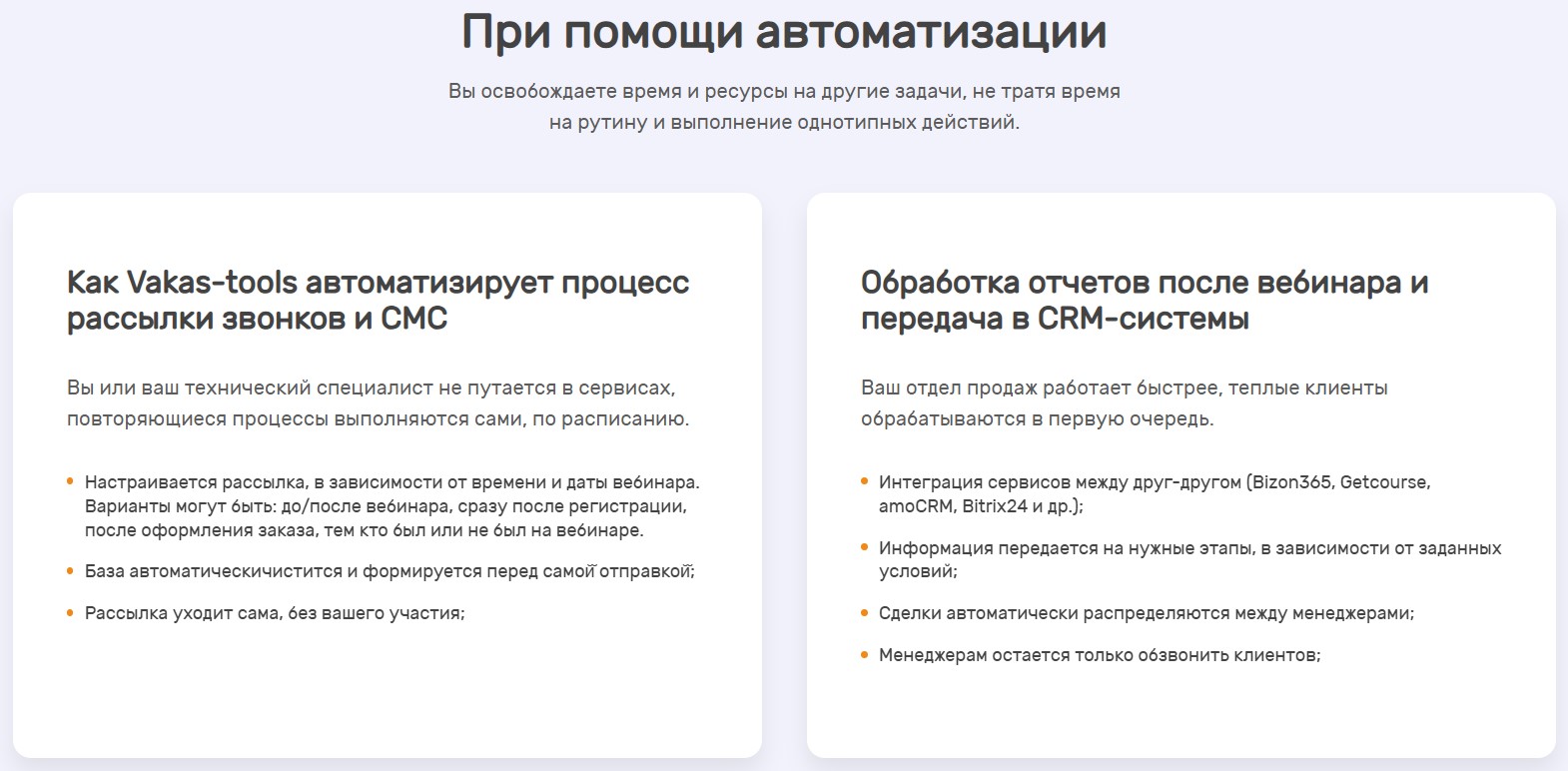 Почти всё это можно настроить за один вечер в визуальном редакторе Vakas-tools, без кода, без программиста и без “костылей”.