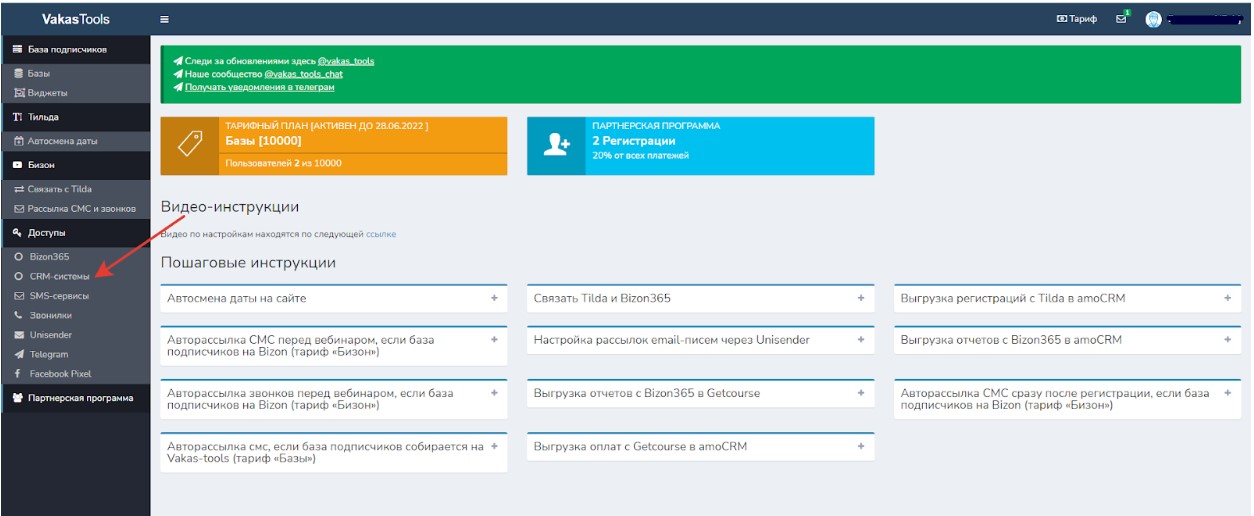 Интеграция через Vakas-tools
