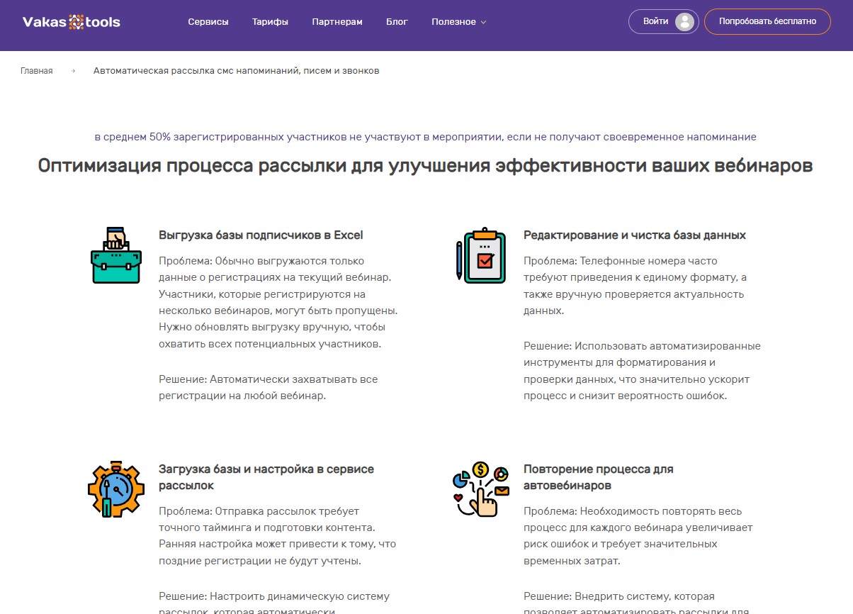 Vakas-tools – это инструмент, который помогает онлайн-школам эффективно управлять данными и оптимизировать процессы. С его помощью можно автоматизировать email-рассылки и другие рутинные задачи, улучшить взаимодействие с клиентами и повысить общую продуктивность команды, сделать работу с данными более удобной и структурированной.