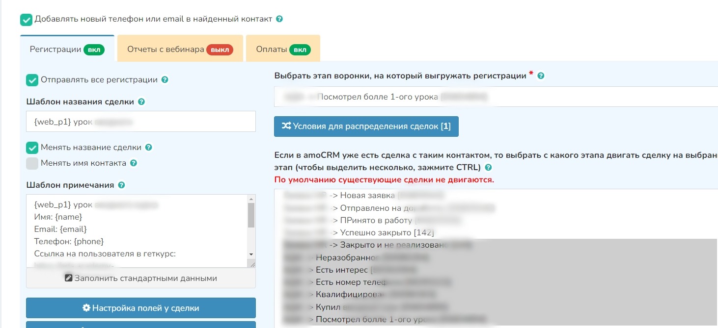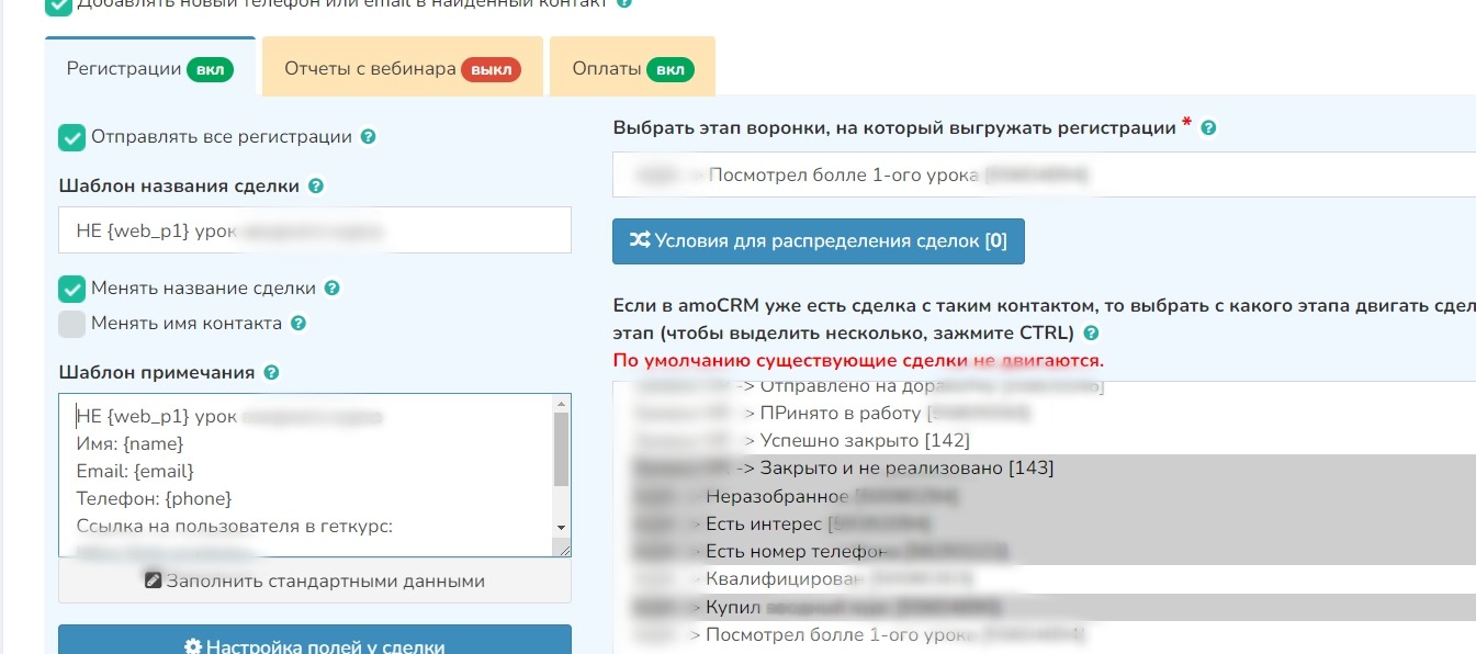 Интеграция со слежкой за прогрессом обучения стала работать стабильно, что позволило автоматически перемещать клиентов на соответствующие этапы в amoCRM.