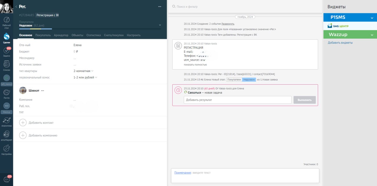 Агентству недвижимости из Москвы требовалось настроить автоматическую передачу лидов из рекламных форм ВКонтакте в amoCRM, чтобы: