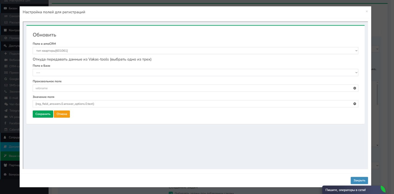 В Vakas-tools настроили соответствие между полями ВКонтакте и amoCRM: теперь данные из формы сразу попадали в нужные разделы карточки клиента.