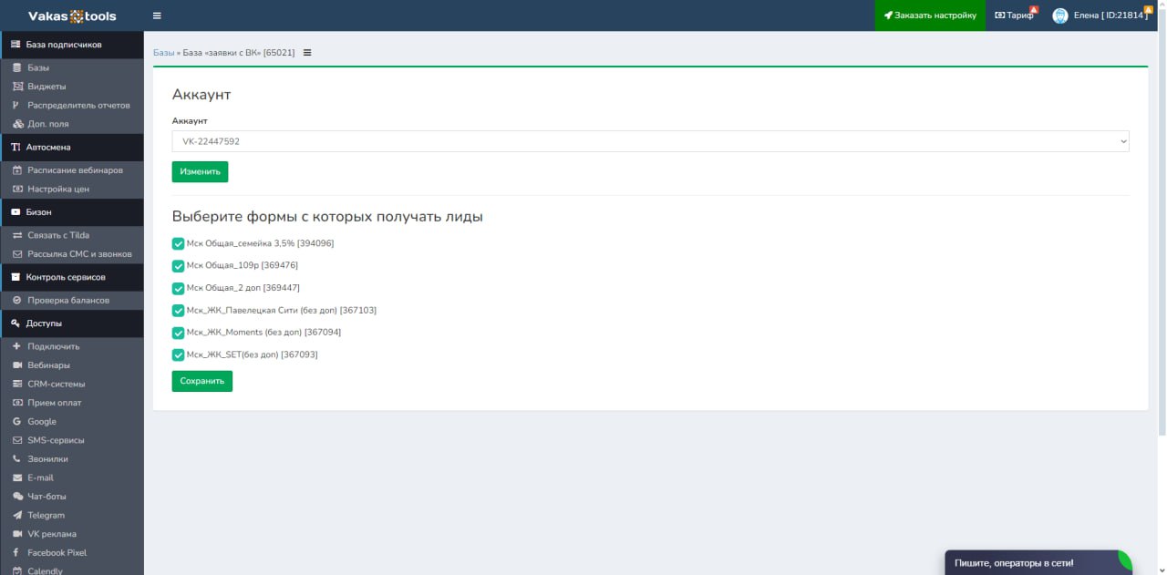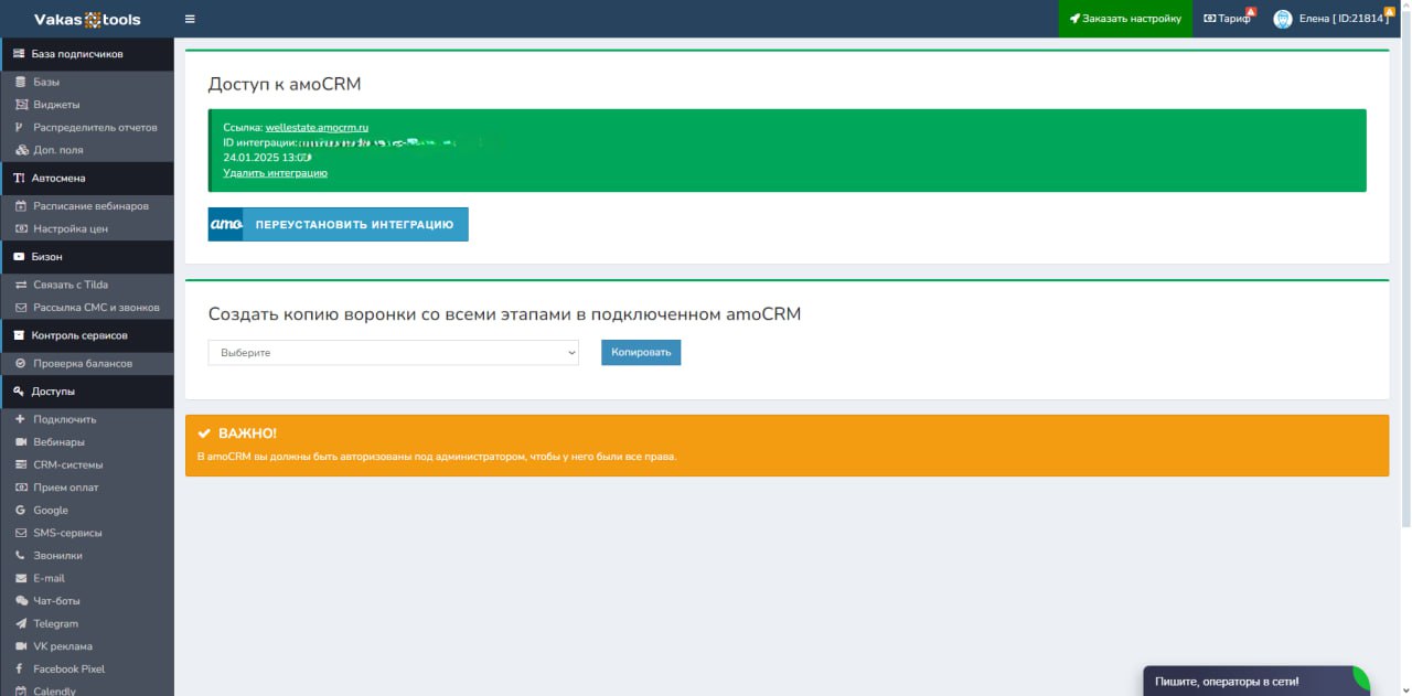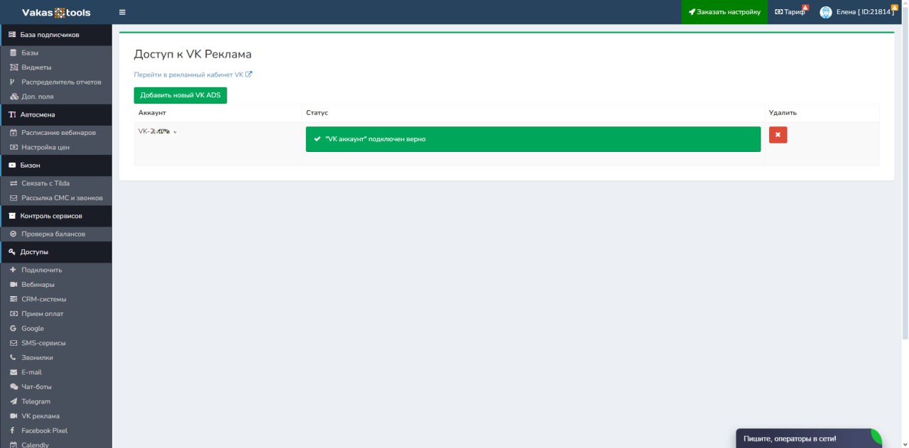 В Vakas-tools подключили рекламный кабинет ВКонтакте и аккаунт amoCRM.