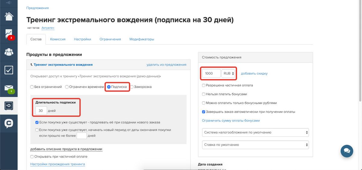 3. Укажите, что курс будет предлагаться по модели подписки.