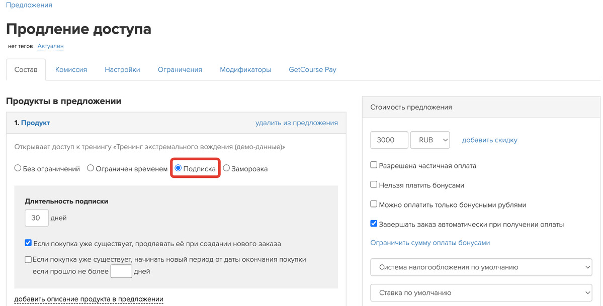 GetCourse также предлагает дополнительные возможности для гибкого управления подписками: