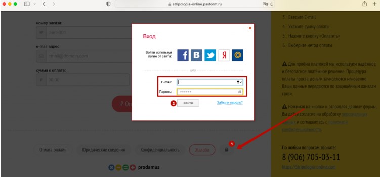 Клиент получит доступ к личному кабинету на сайте, когда заполнит заявку на подключение. Менеджер отправит ссылку и пароль. Для того чтобы авторизоваться на сайте, нужно нажать на кнопку с замочком справа и ввести логин и пароль.
