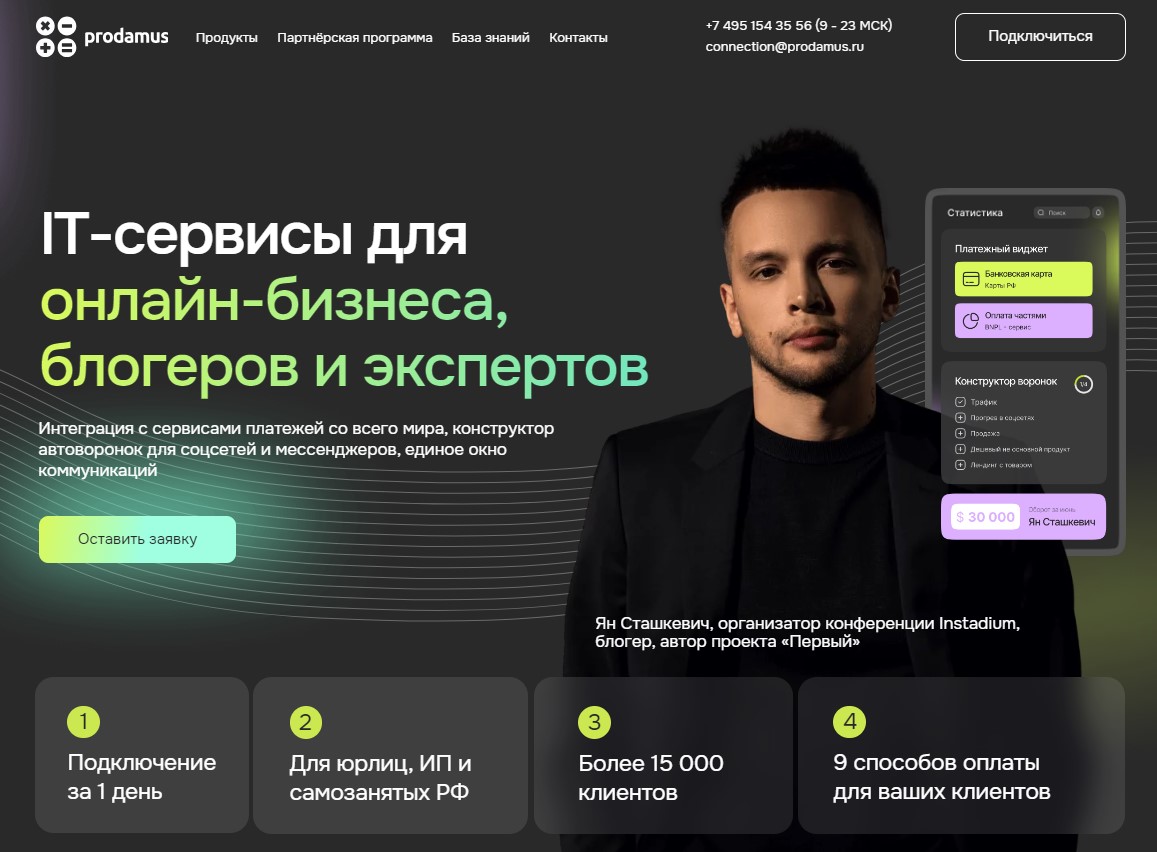 Продамус — удобный сервис, который подходит как самозанятым, так и крупным онлайн-школам. Разработчики платформы решили распространенные проблемы малого бизнеса, включая оформление рассрочек, настройку рекуррентных платежей. А с Vakas-tools сервис получит еще больше функций благодаря автоматическому обмену данных между разными системами.