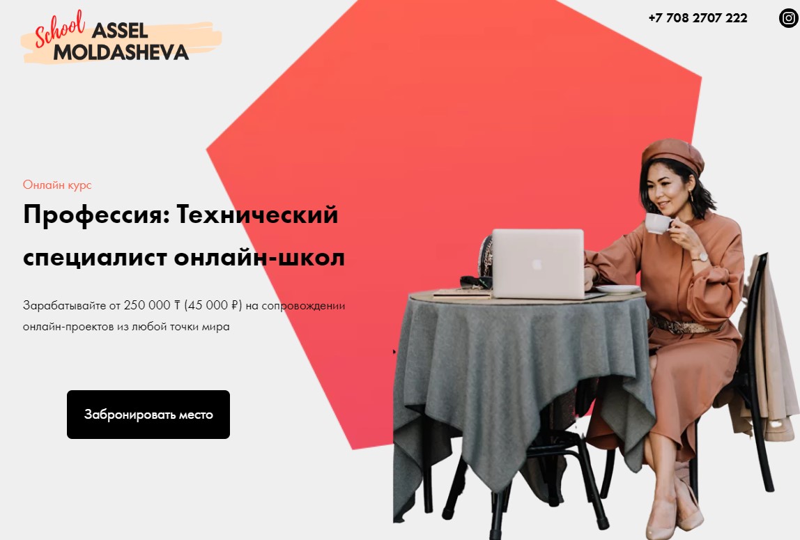 Курс технического специалиста онлайн-школ вы можете пройти у Асель Молдашевой. Он состоит только из практических задач и отработки навыков, поэтому по окончании у вас будет готовое портфолио и привлекательное резюме.