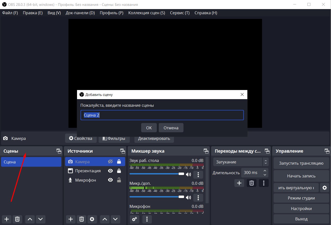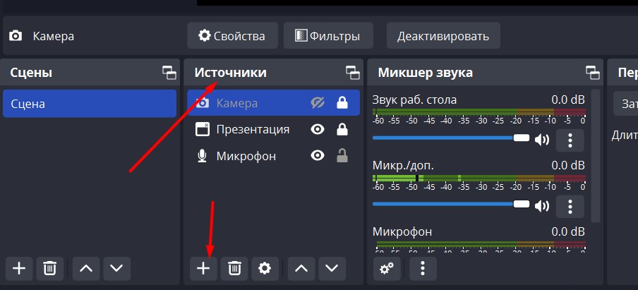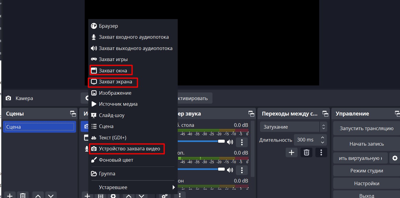 Создание сцен и источников