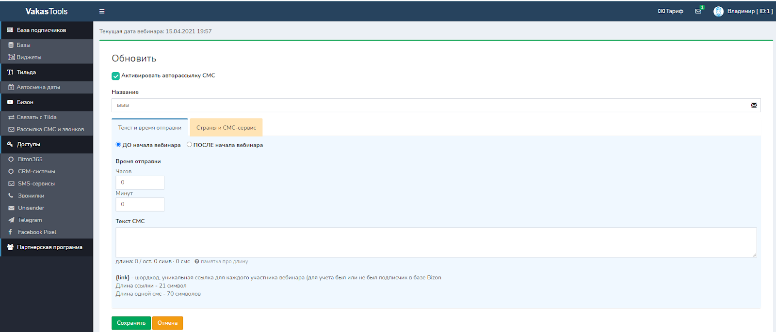 Вы просто прописываете ID ролика или текст СМС внутри Vakas-tools, и система сама дергает нужный сервис в нужную секунду.