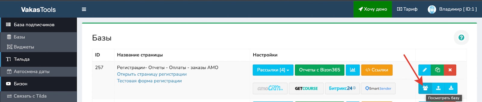 Для диагностики ошибок в Vakas-tools: перейдите в раздел «Посмотреть базу».