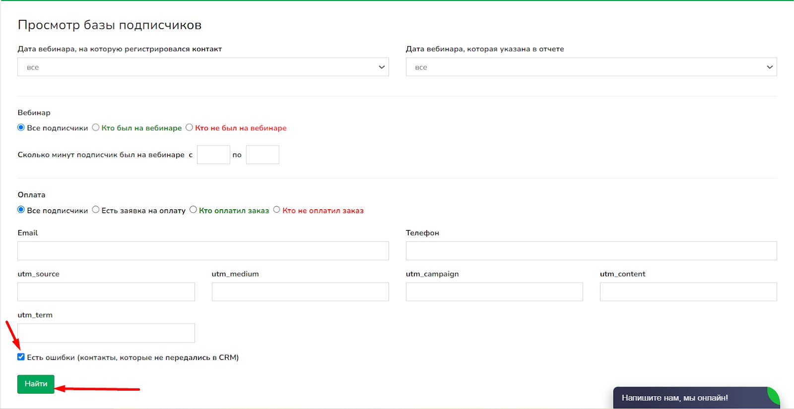Выберите фильтр «Есть ошибки» и нажмите «Найти».