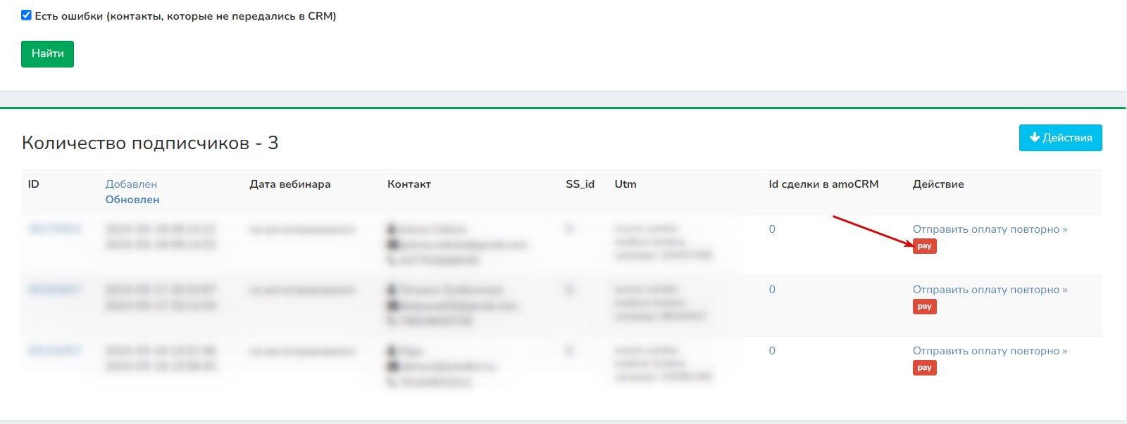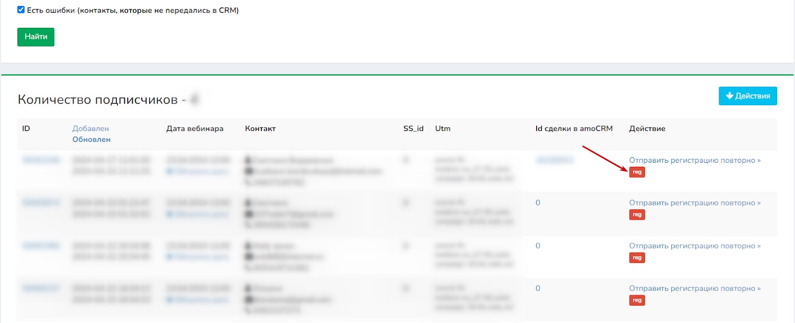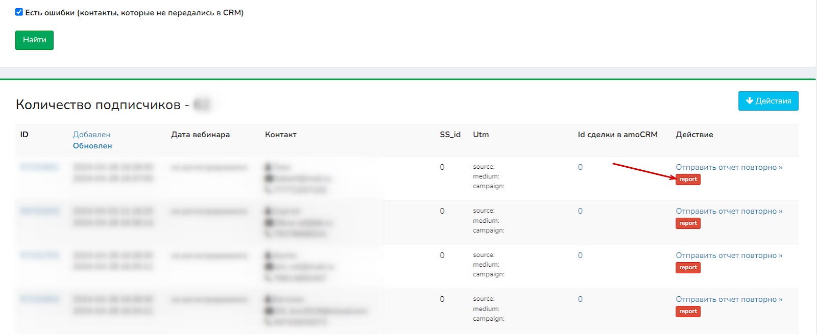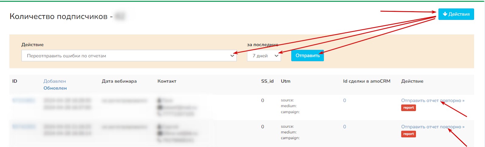 После исправления переотправьте сделки с помощью кнопки «Действие», выбрав нужное событие и период.