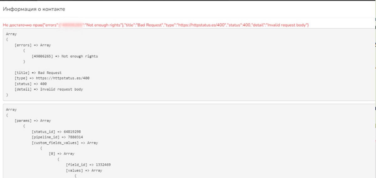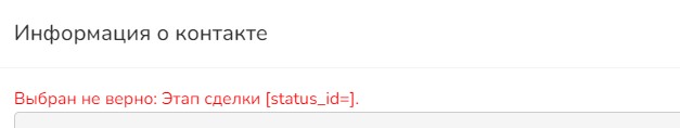 - Передаваемое значение не соответствует типу поля в amoCRM. Например, если в amoCRM поле имеет тип "список", а передается пустое значение (например, пользователь не выбрал вариант ответа), то поле в базе данных останется пустым. В результате возникнет конфликт, так как для поля типа "список" не предусмотрен пустой вариант, что приведет к ошибке запроса.