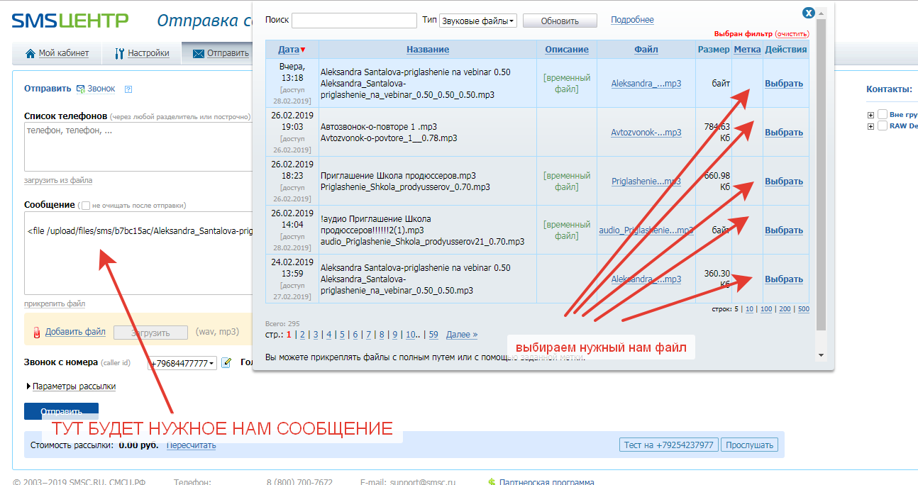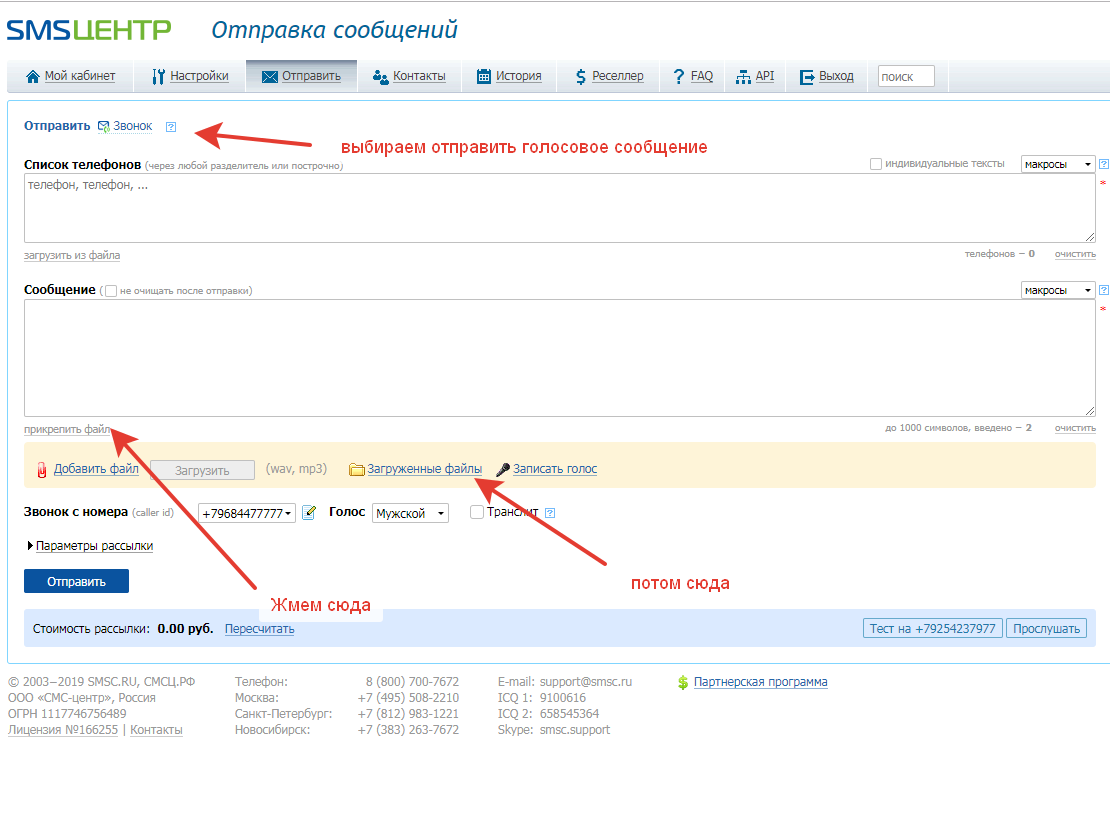 Отправить - Прикрепить файл - Выбираете ваш ролик и в поле для сообщений появится код. Его копируете и вставляете в номер аудиоролика.
