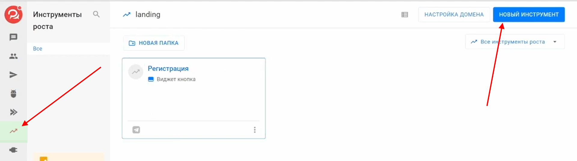 В меню слева выберите «Инструменты роста».