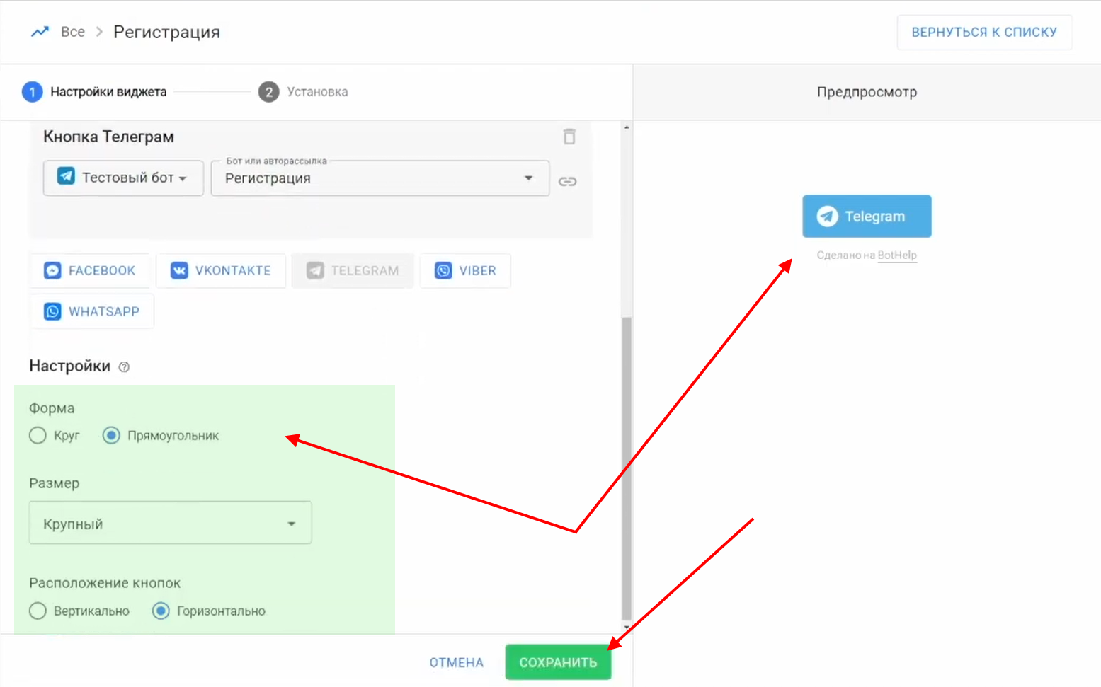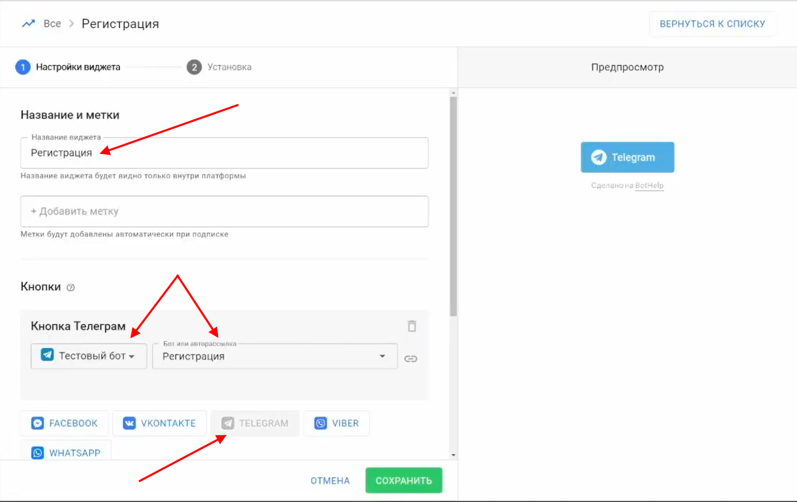 1 Создайте виджет-кнопку в BotHelp