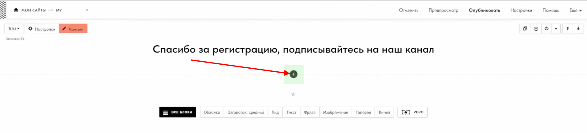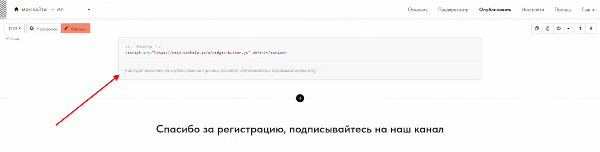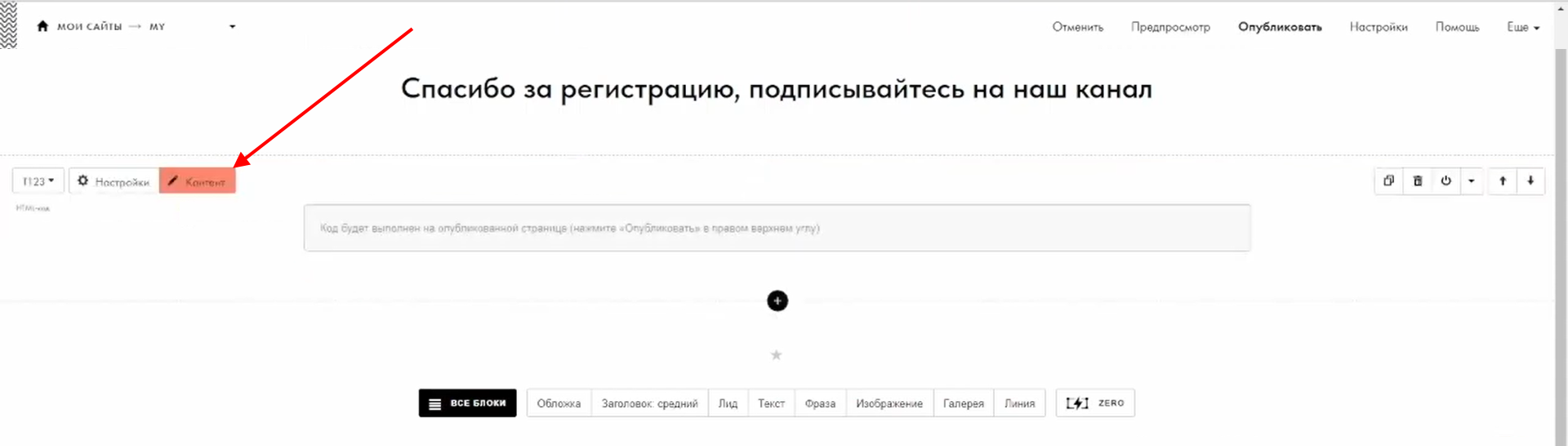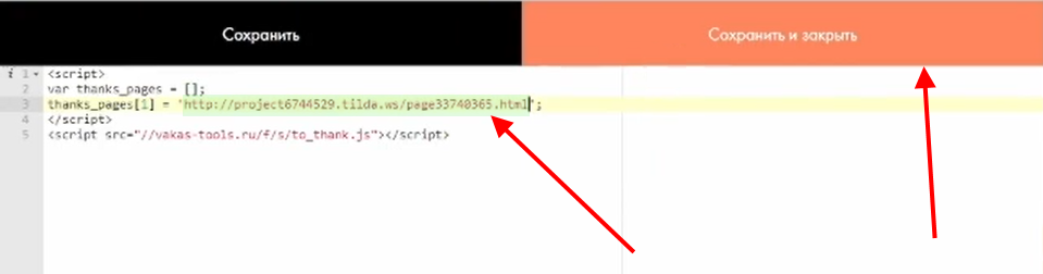 3 Добавьте код активации на страницу «Спасибо» в Tilda