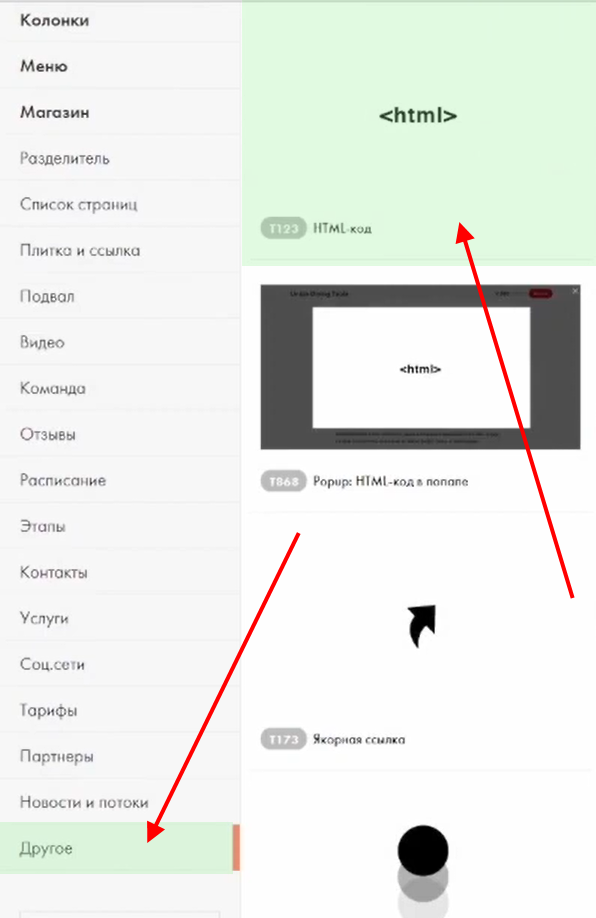 Добавьте блок «Другое» → «HTML-код».