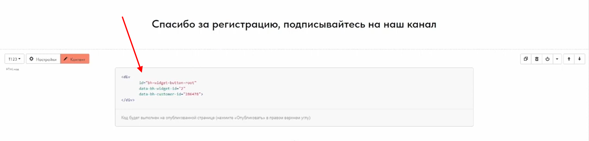 4 Добавьте код виджета на страницу «Спасибо»