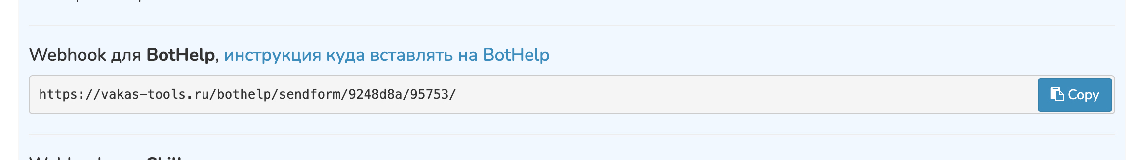 Спуститесь ниже и найдите раздел «Webhook для BotHelp».
