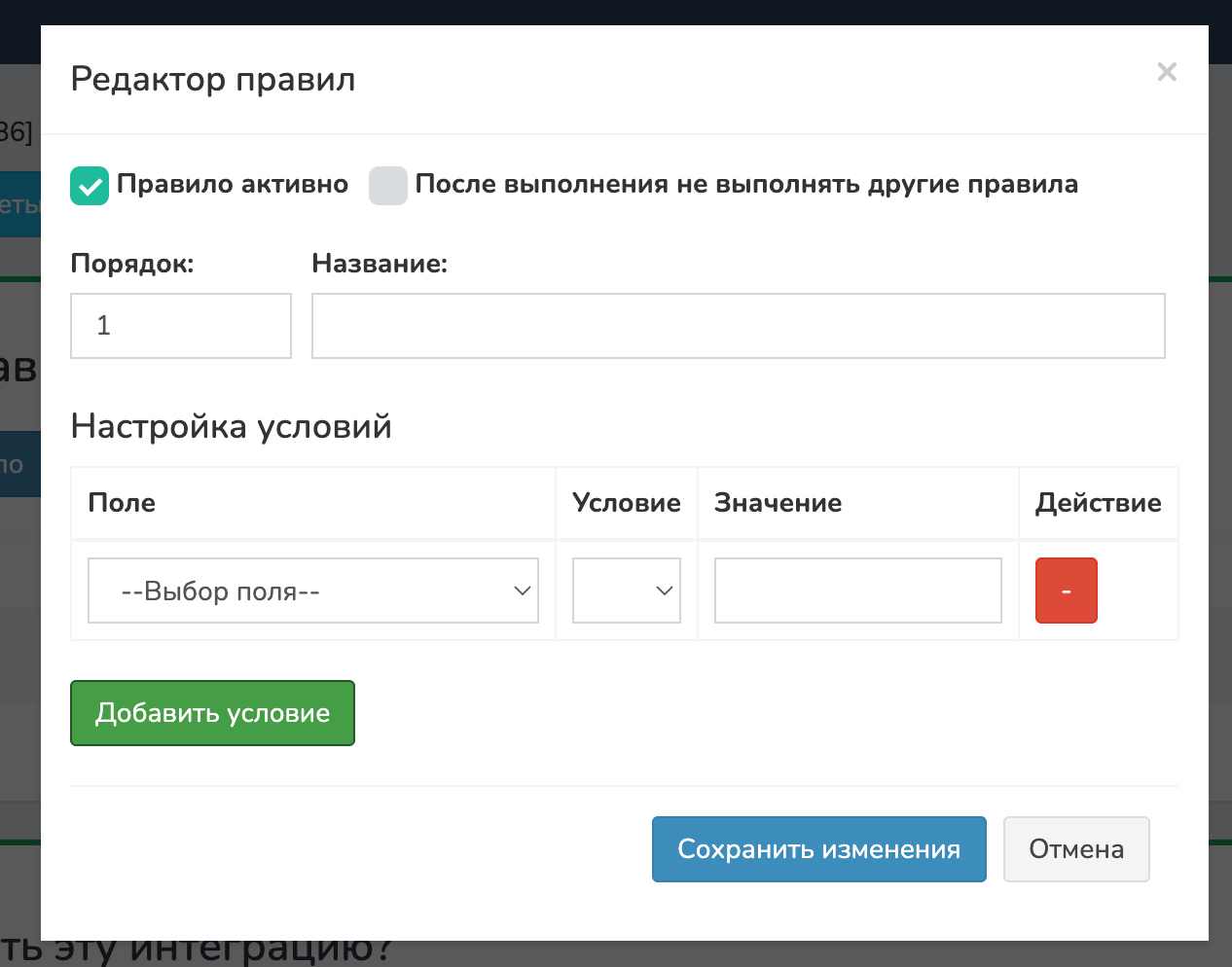 При необходимости добавьте дополнительные правила с условиями. Например: правило «Новая заявка (не оплачено)». Условия: Поле оплачено, условие = 0. Поле осталось оплатить, условие > 0.