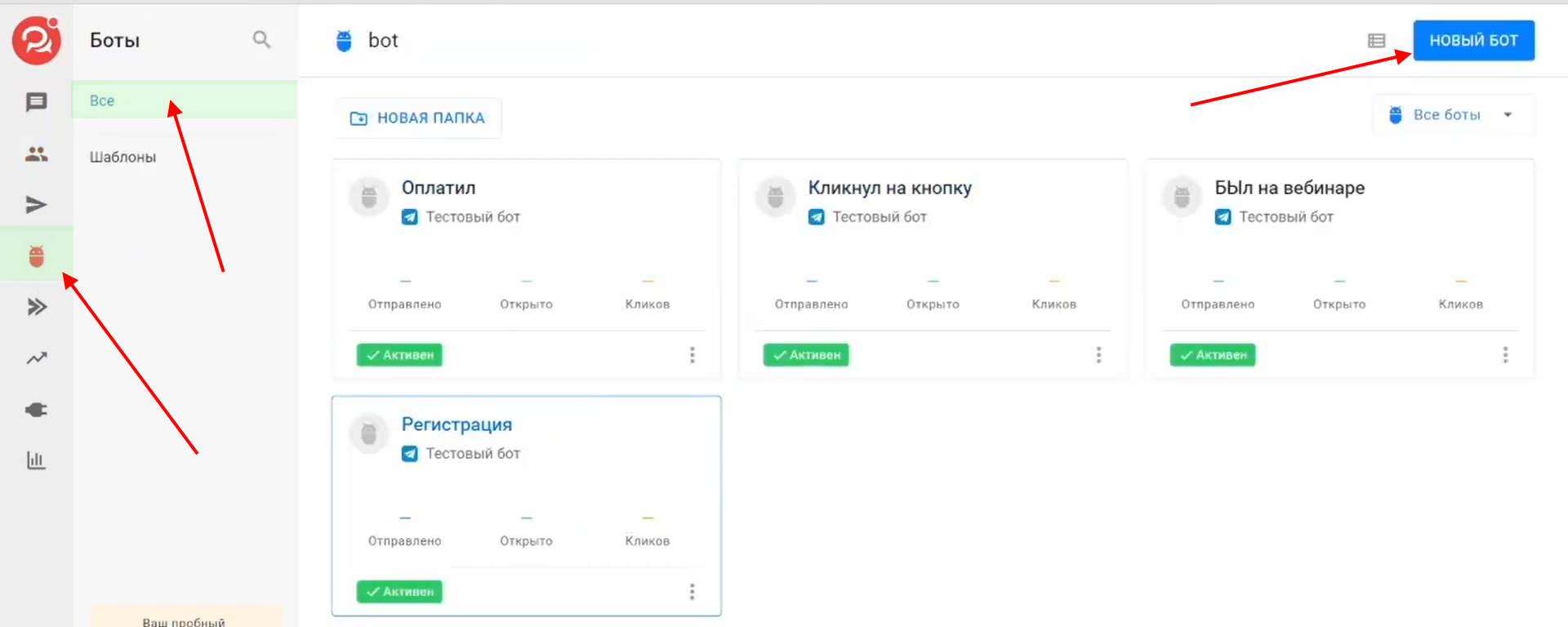В меню слева выберите «Боты».