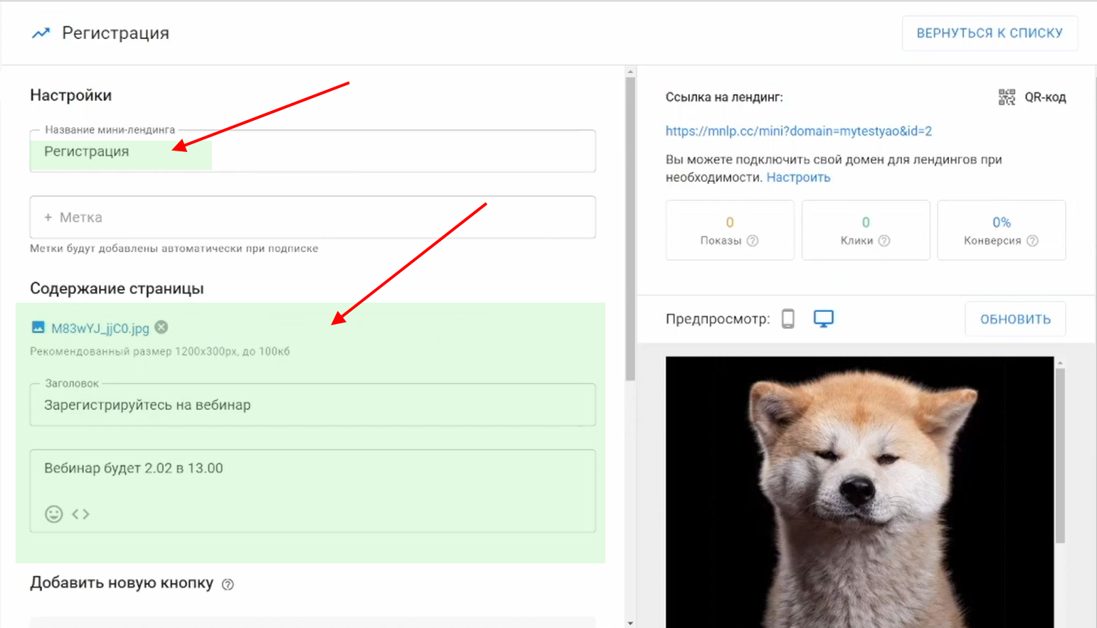 Вернитесь в настройки минилендинга.