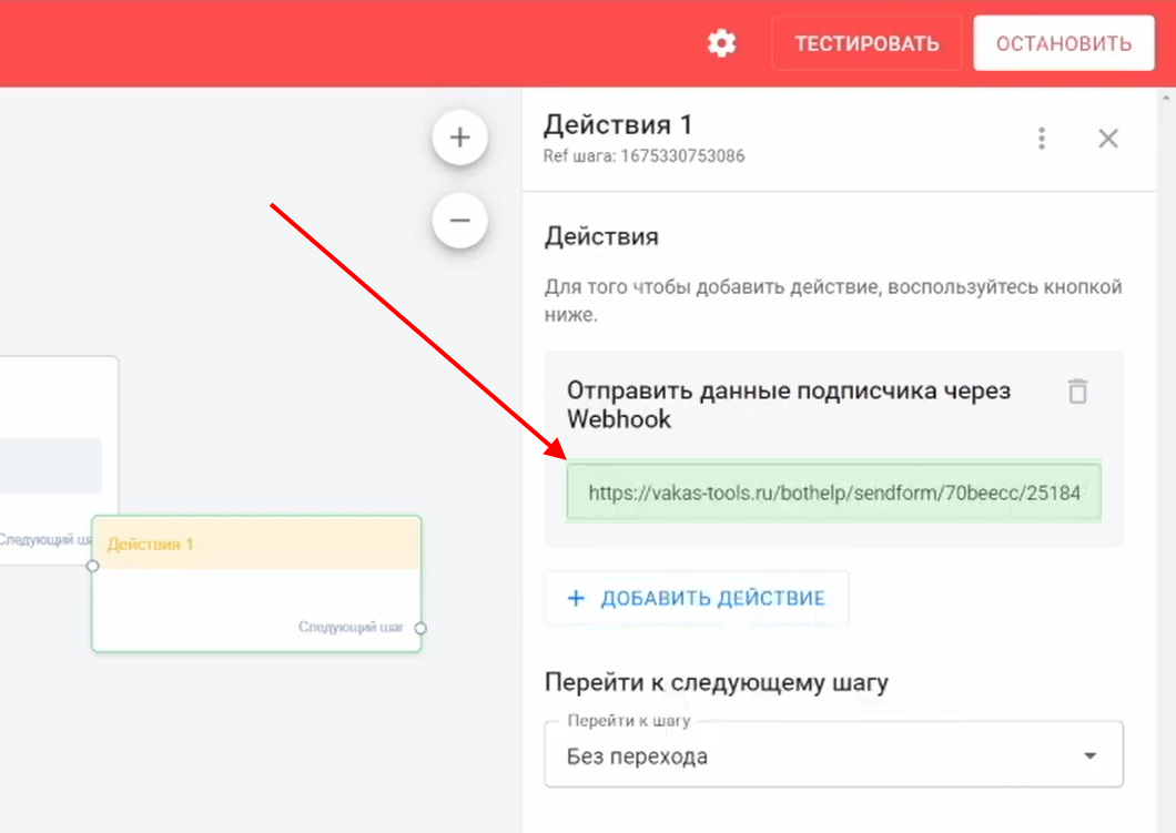 3 Настройте передачу данных в Vakas-tools через вебхук