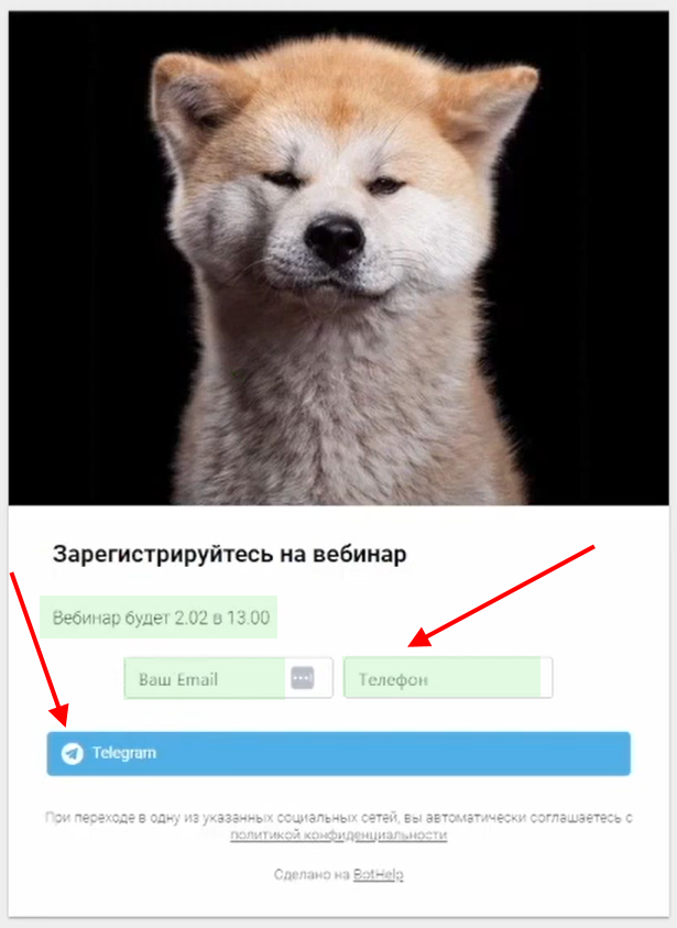 - Лид переходит на минилендинг BotHelp и заполняет форму (email, телефон).