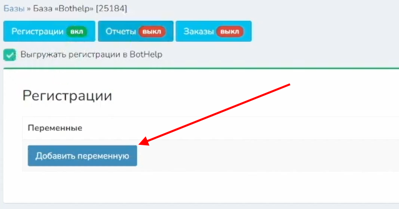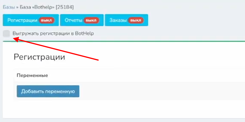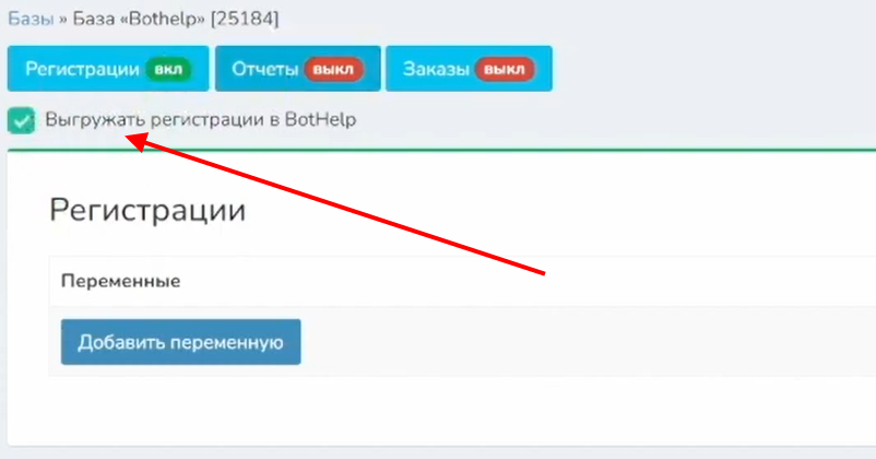 Настроим передачу дополнительных полей в Bothelp. Вернитесь в Vakas-tools, выберите вкладку «Регистрации» и проставьте галочку «Выгружать регистрации в Bothelp»