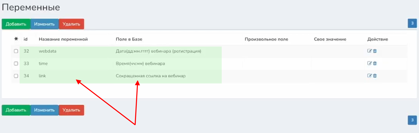 3 Добавьте еще несколько переменных, например, время вебинара и ссылка на вебинар