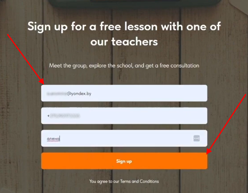 1 Если необходимо, протестируйте передачу регистраций. Зайдите на лендинг, введите запрашиваемые данные и нажмите на кнопку «Зарегистрироваться»/«Подписаться»