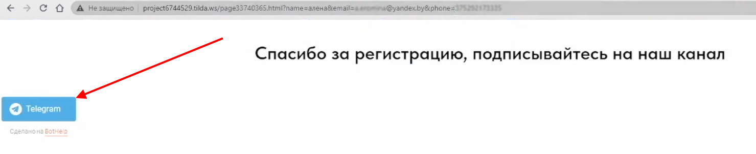 - Передача контактов с Tilda в Bothelp через минилендинг или со страницы регистрации через страницу Спасибо (если у вас уже есть контакты в Bothelp, пропустите этот шаг);