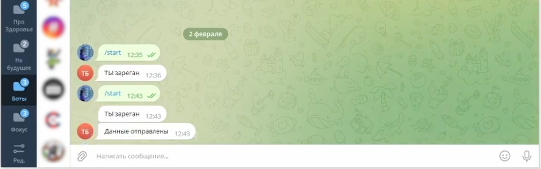 4 Запустите бот. Проверьте, что поступили сообщения о том, что лид зарегистрирован и данные отправлены