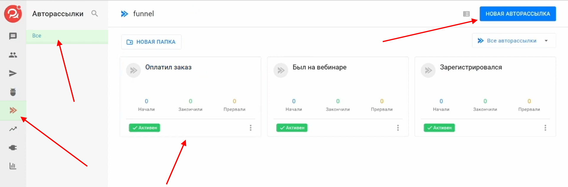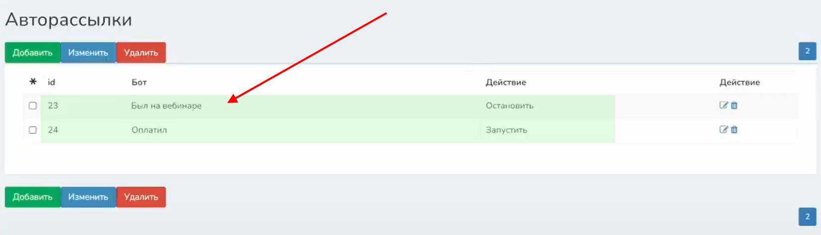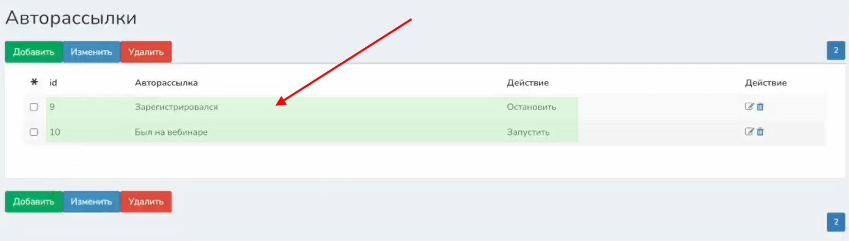 4 Аналогично остановите авторассылку «Был на вебинаре» и запустите «Оплатил»