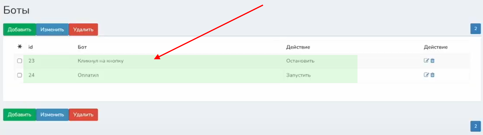 3 Остановите бота «Кликнул на кнопку» и запустите «Оплатил»