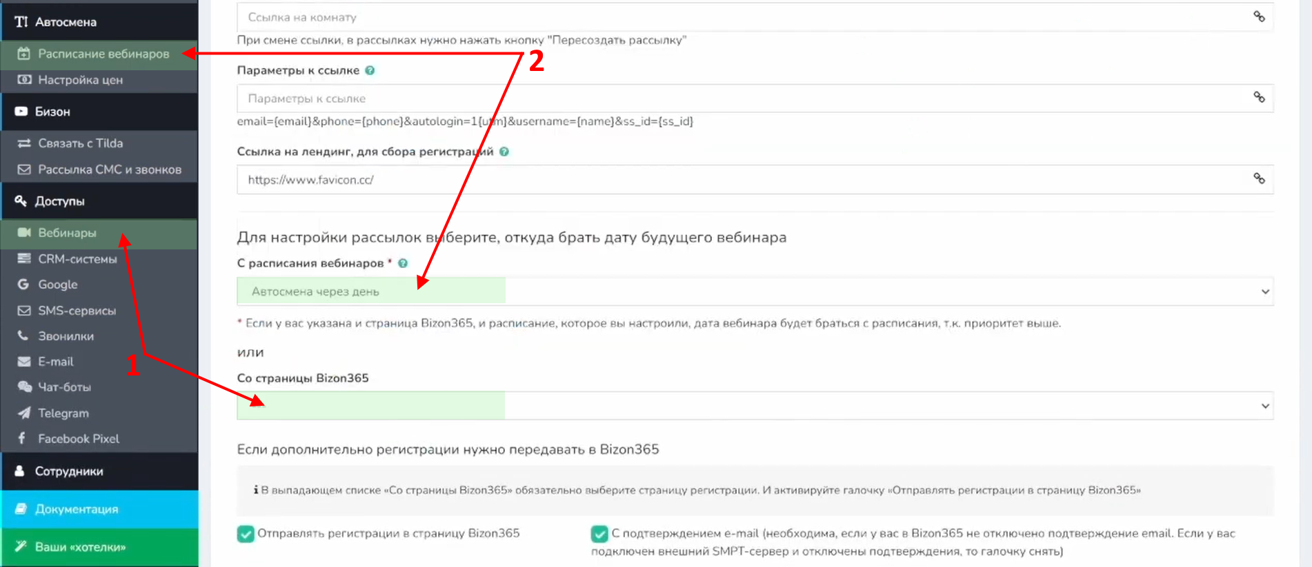 2 Если вы не используете страницу регистрации на Bizon365, используйте автосмену даты