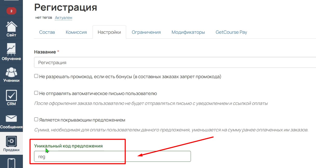 - Название — произвольное имя (например, «GetCourse — основная школа»).