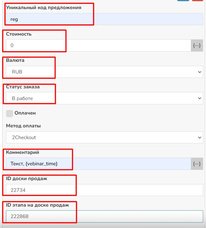 PRODUCT_123, стоимость: {#costMoney#}, статус: «Оплачен», чекбокс «Оплачен»: вкл.3 Сохраните