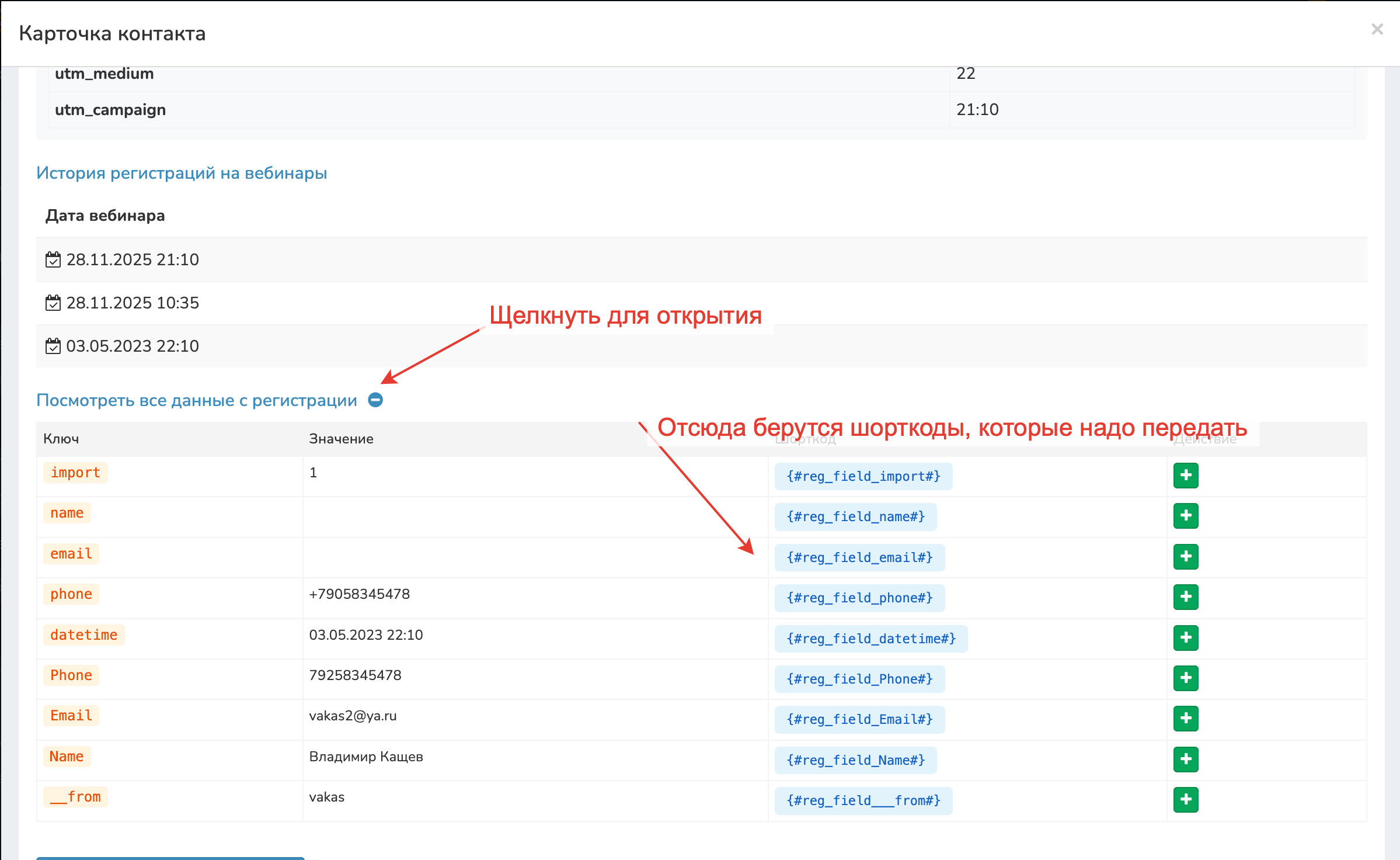 Регистрация вебинар.4 Действие «Поля контакта» (по желанию)