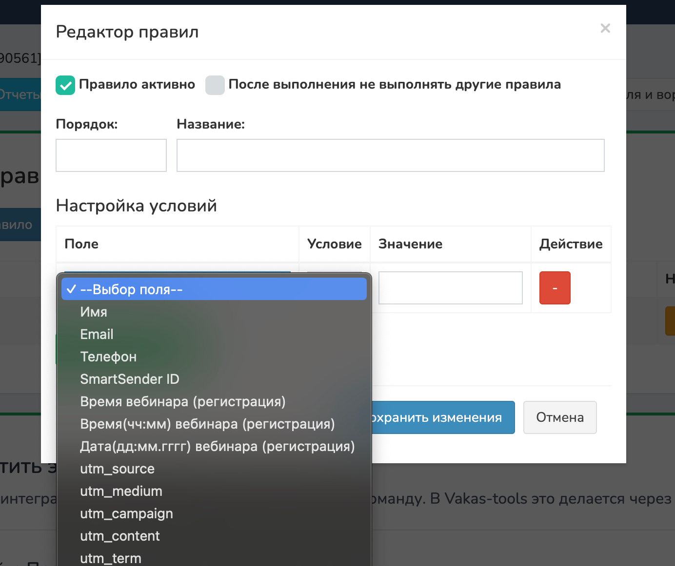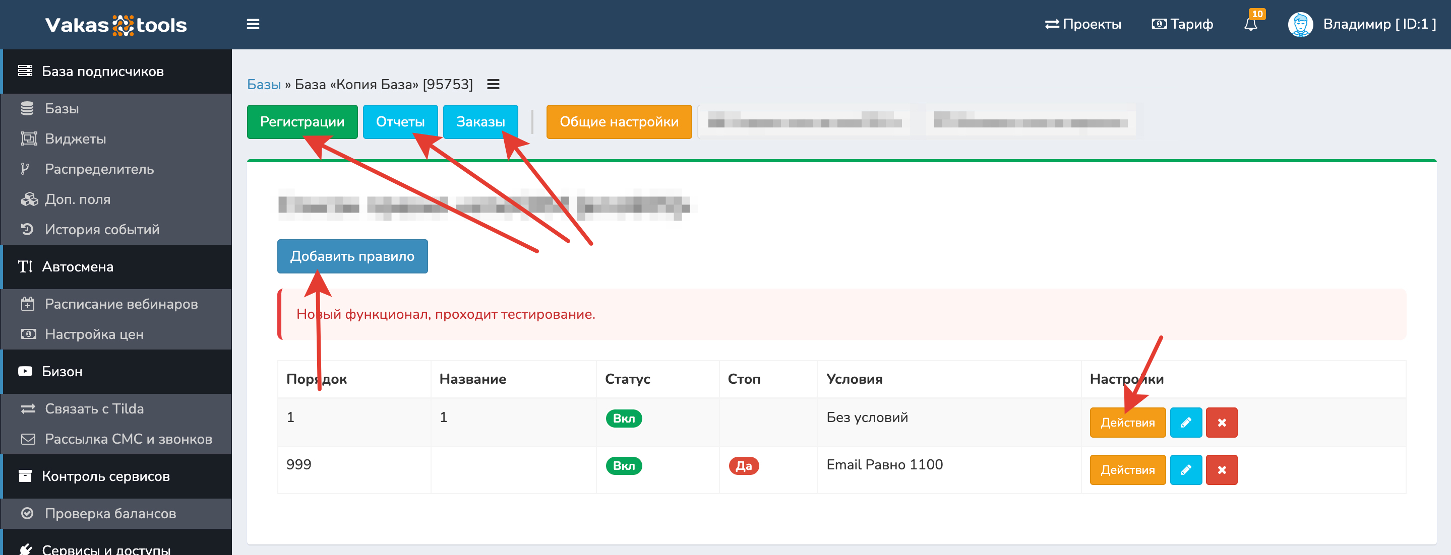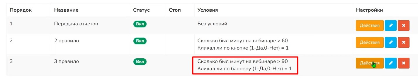Подробная инструкция по созданию правил и настройке условий — в отдельном разделе. В GetCourse отличаются только доступные действия.