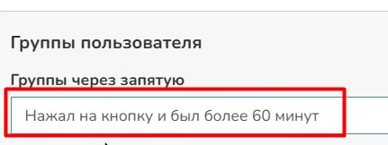 | Группы пользователя | ⧉ | Блок 1: группа Вебинар. Блок 2: группа Новые |