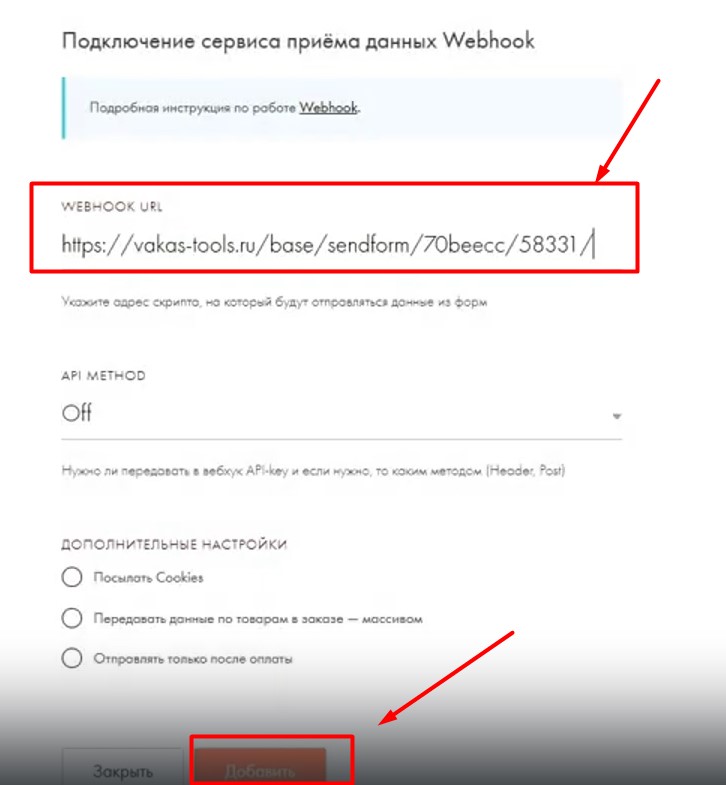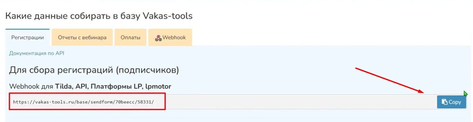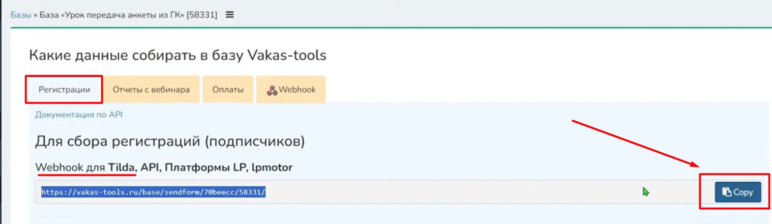 Скопируйте в ссылках для базы в разделе «Регистрации» снова «Webhook для Tilda».