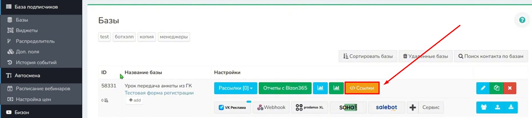 Перейдите в Vakas-tools → База → Ссылки → Регистрации.