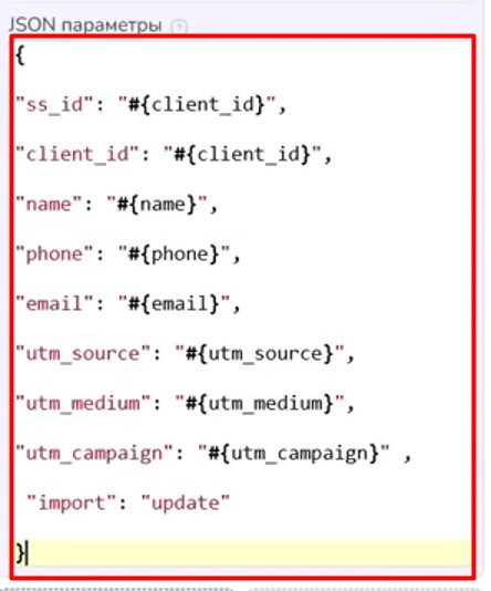 JSON-параметры: используйте шаблон из инструкции (не изменяйте).