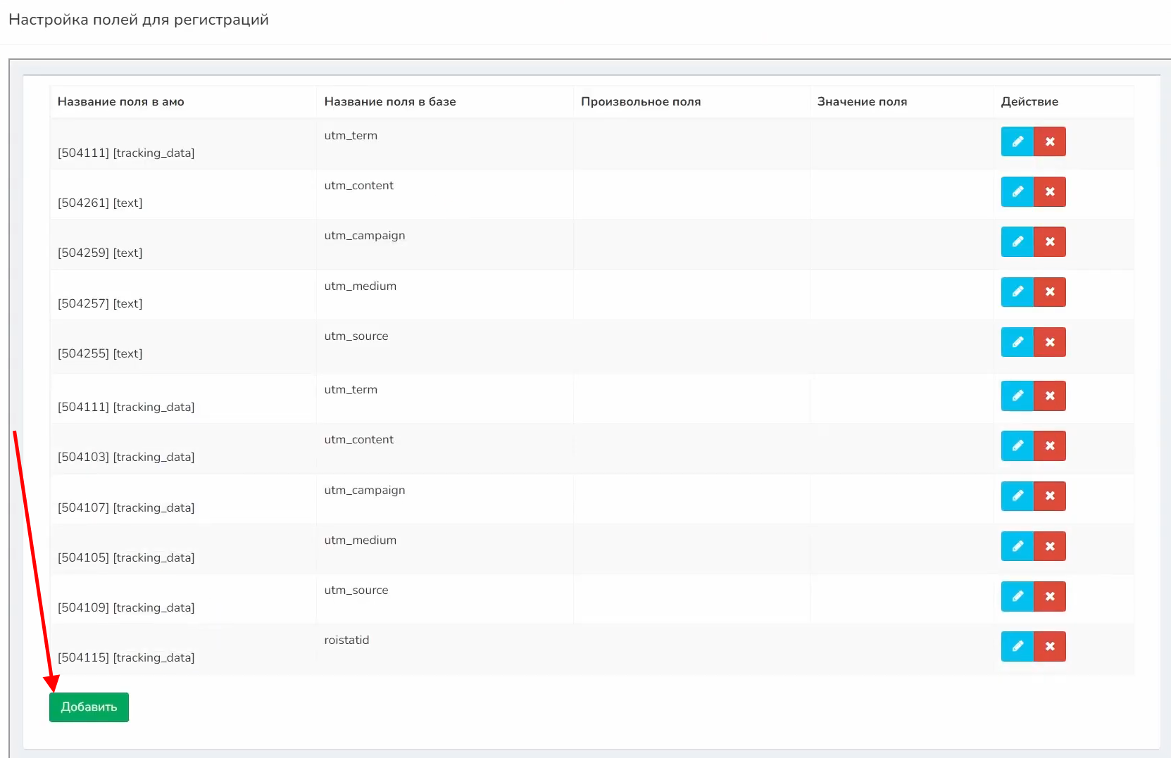 2 В окне «Настройка полей для регистраций» нажмите на «Добавить»